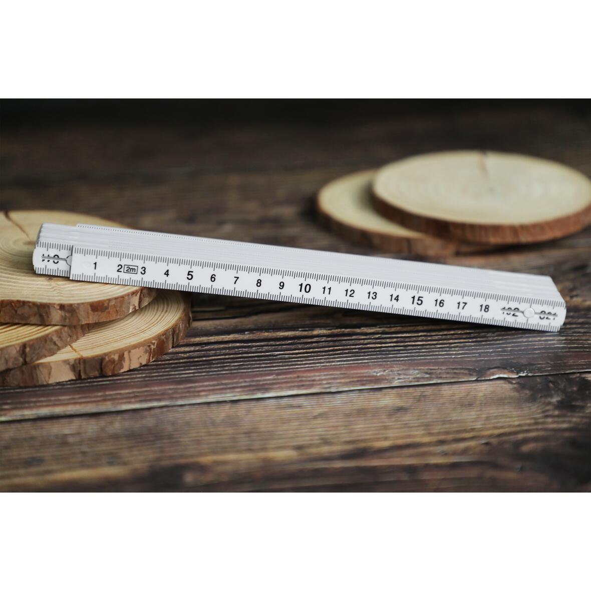 Skládací metr vyrobený z ABS, 2 metry dlouhý a má 10 segmentů.