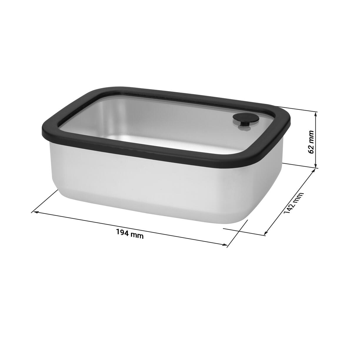 Nerezový box se skleněným víkem "RILO“, 1200 ml, Stříbrná/Šedá