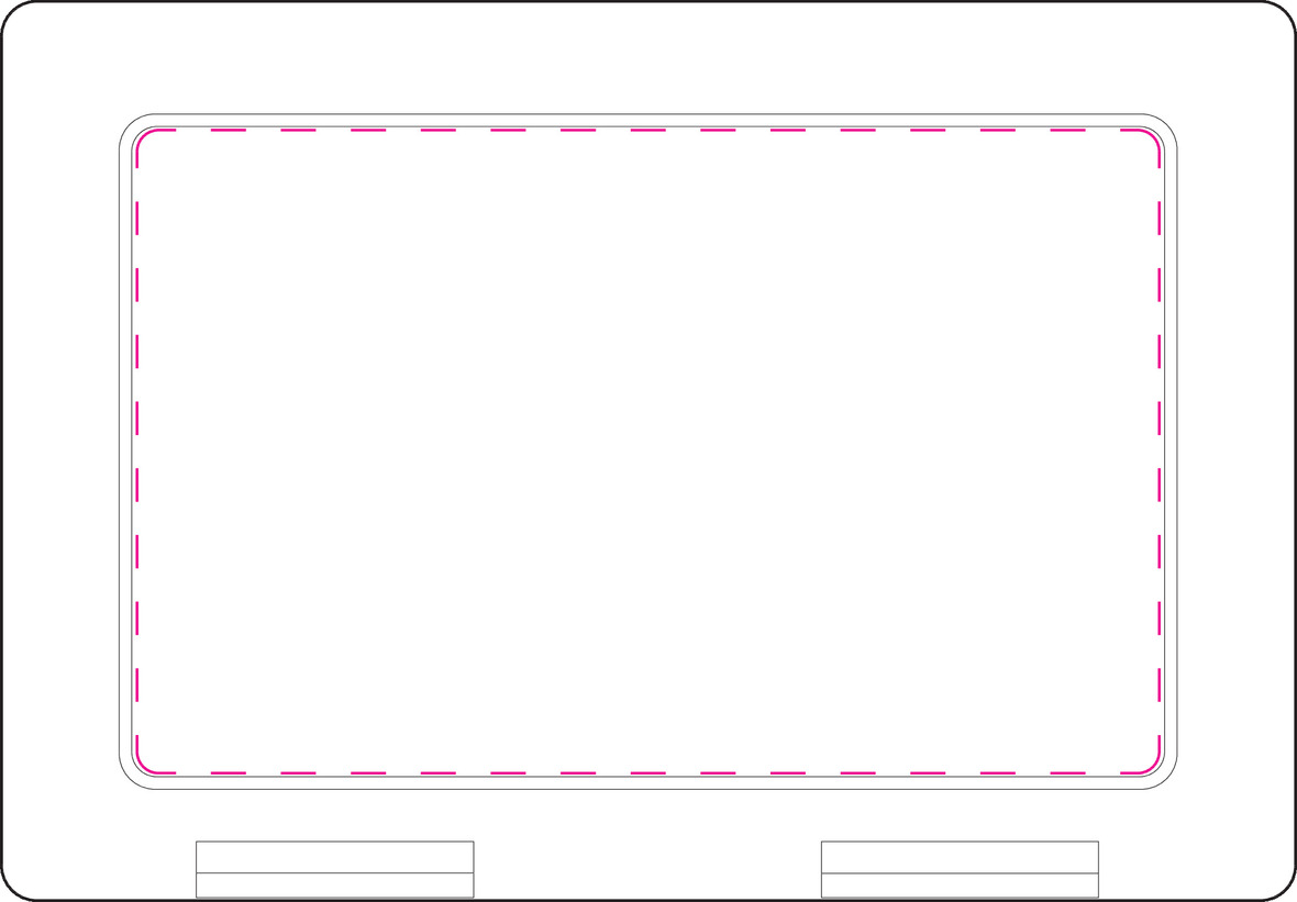 Plochý plastový boxík. Svačinový box má zavírání na zacvaknutí. Na víčko krabičky lze použít IMould technologii.