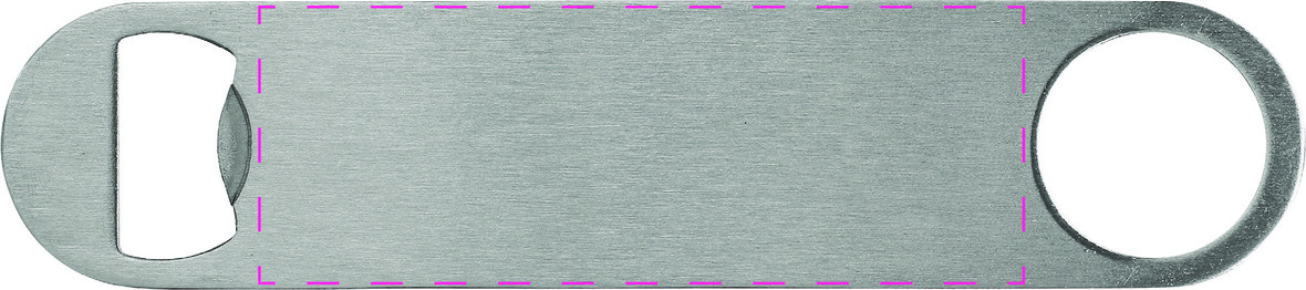 Plochý otvírák z ušlechtilé oceli. Otvírák lze dobře upevnit na magnetické povrchy.