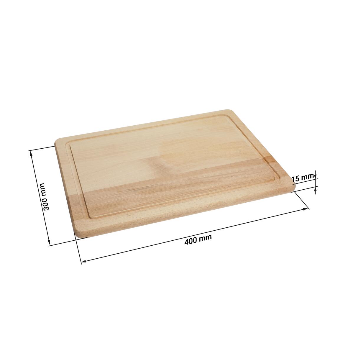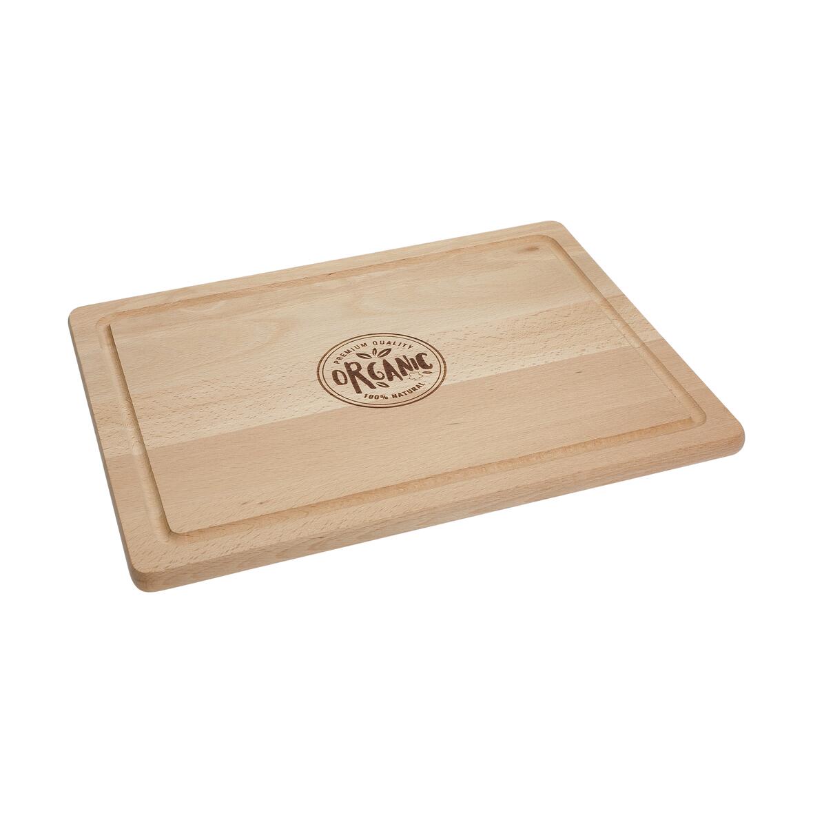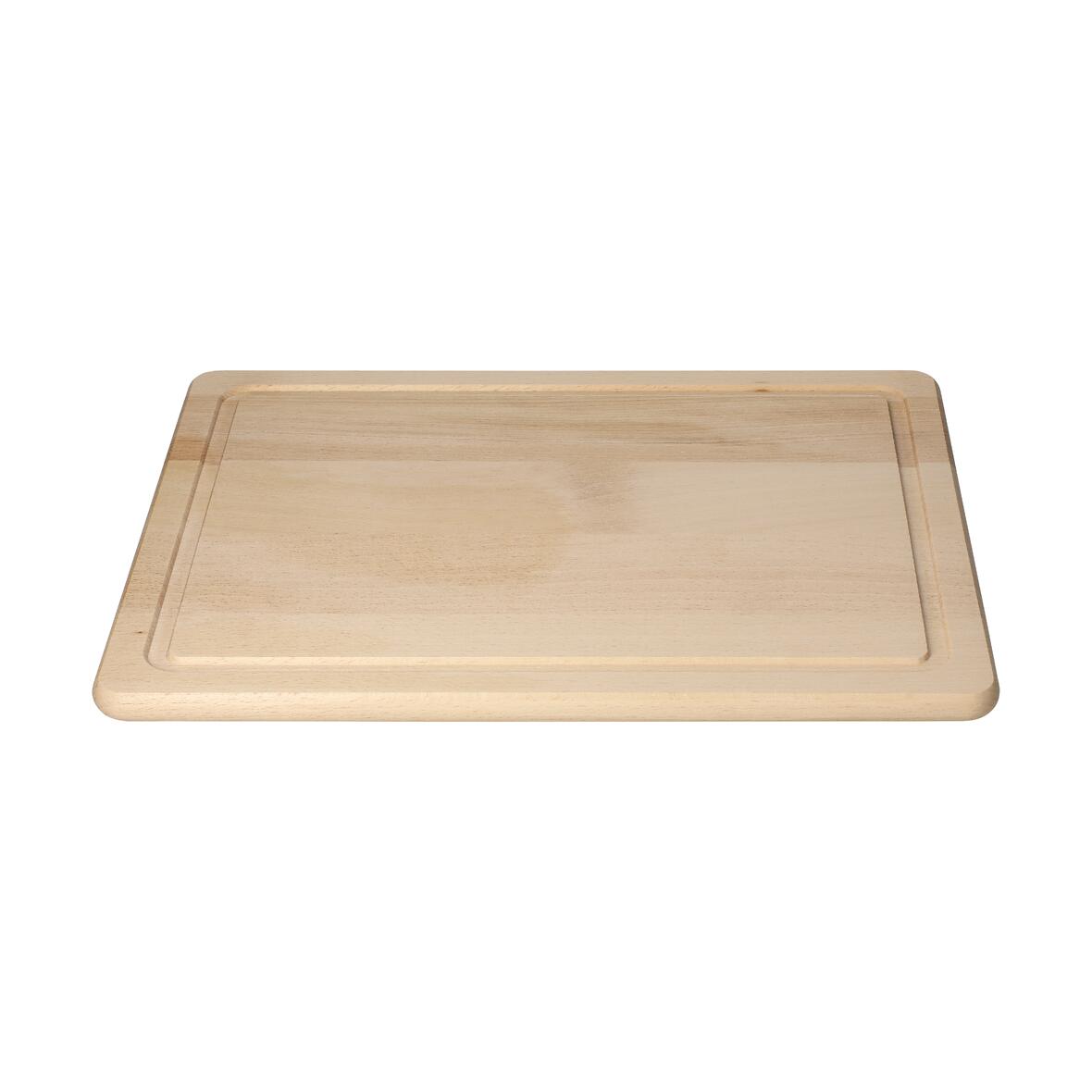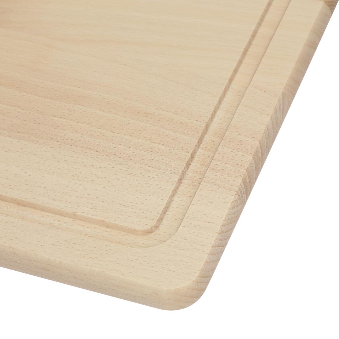 Je na ní dost místa. Obrovská řezná a sendvičová deska vyrobená z 15 mm silného bukového dřeva (neošetřená). S frézovanou drážkou na okraji, aby se zabránilo stékání kapalin dolů. Myjte pouze ručně.