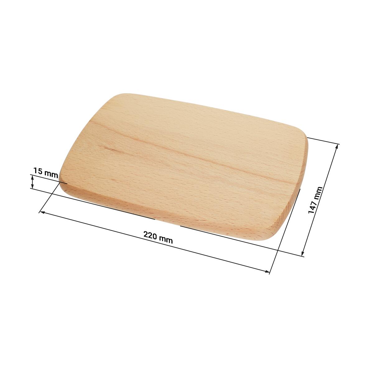 Dřevěné hranaté prkénko na krájení o tloušťce 15 mm. Prkénko má zaoblené rohy. Mytí pouze ručně.