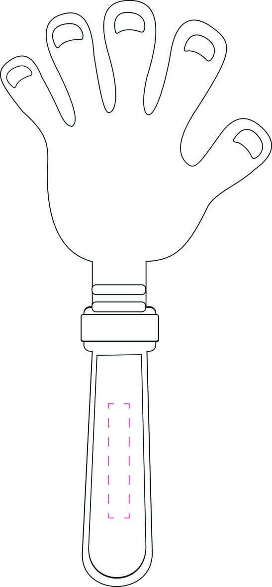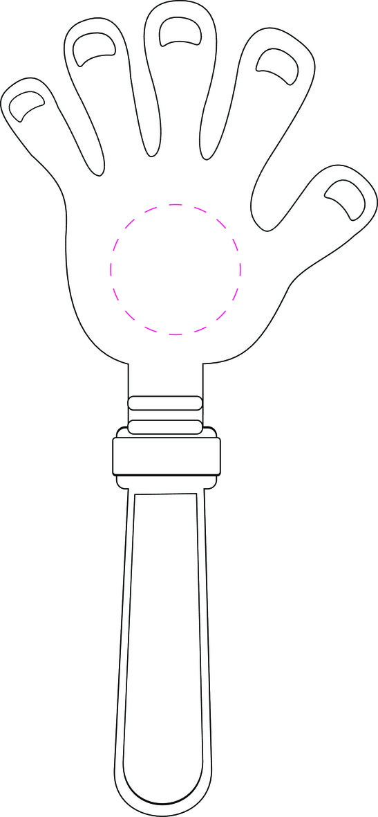 Plastová klapačka ruka. Trojdílná klapačka ve tvaru ruky. Standardně dodáváno v jedné barvě. Lze dodat i mix barev.