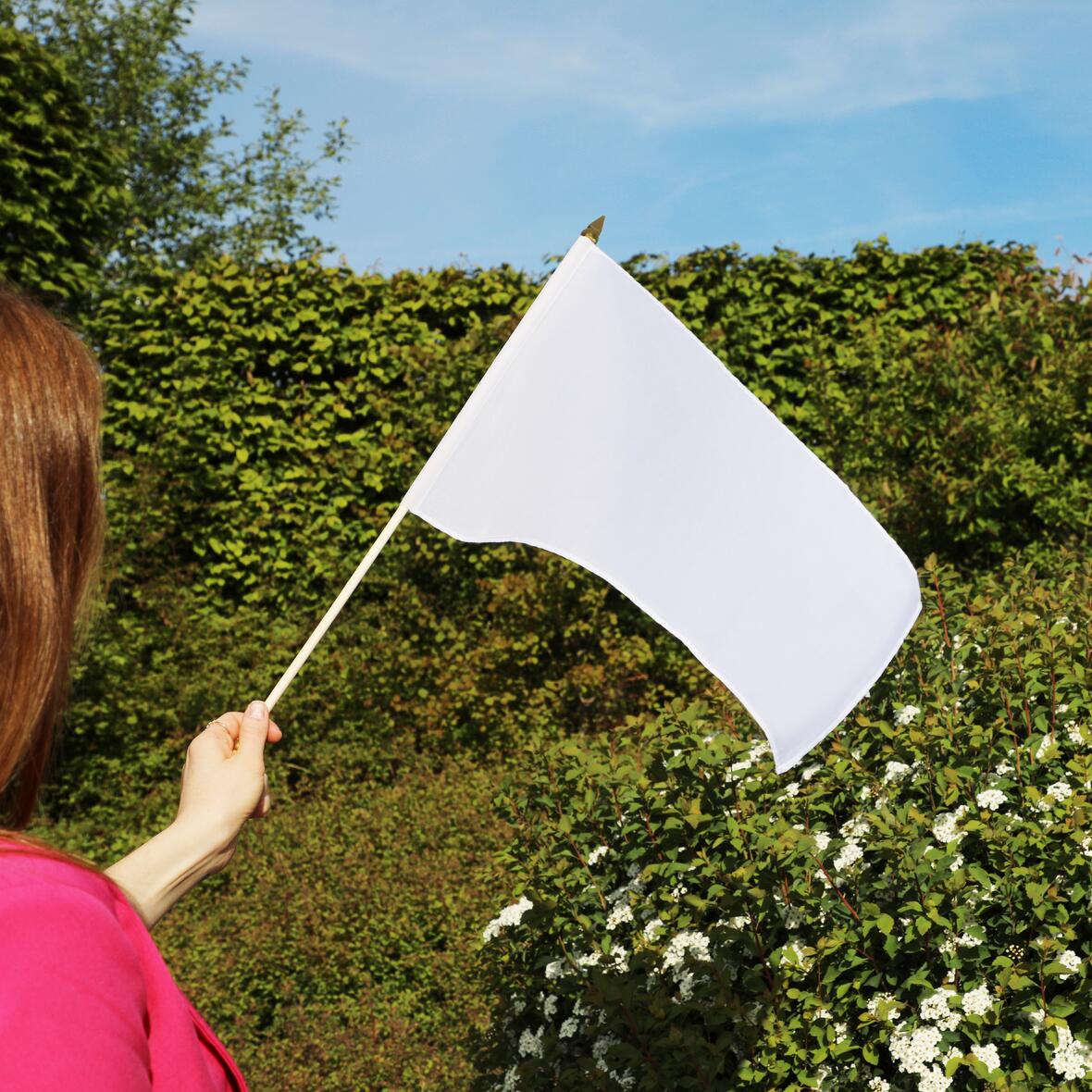 Bílá vlajka na dřevěné tyčce. Vlajka je ideální pro sublimační tisk. Tyč: 60 cm