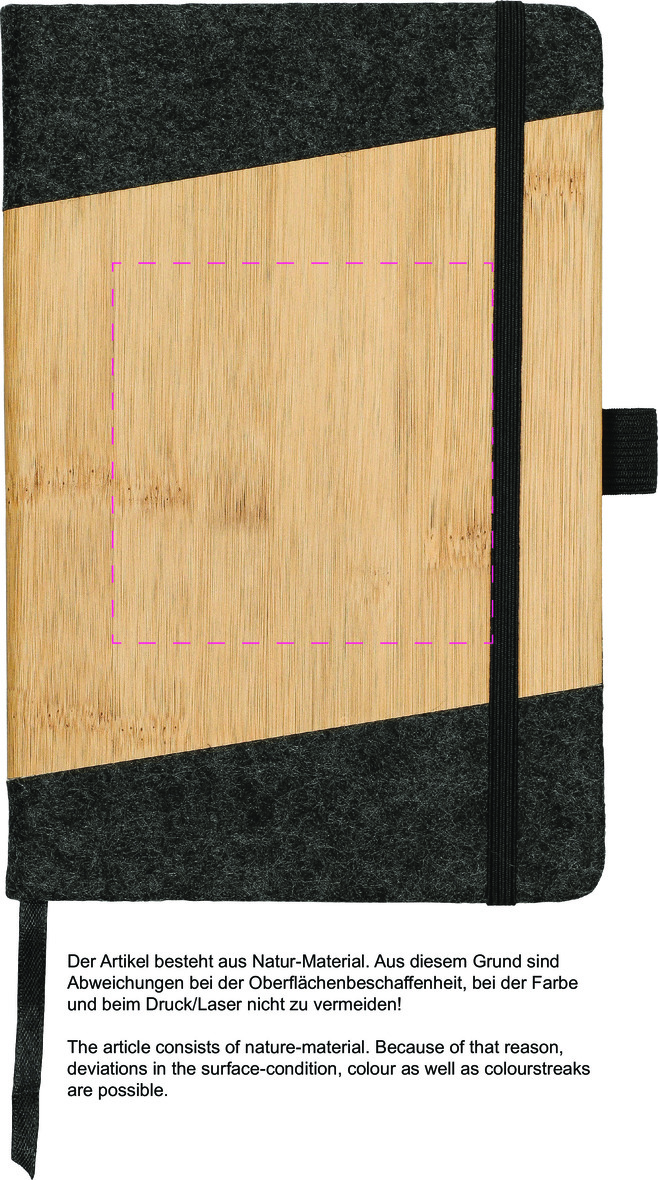 bambusové desky a recyklovaný čtverečkovaný papír. Rozměr 21 x 14 cm.